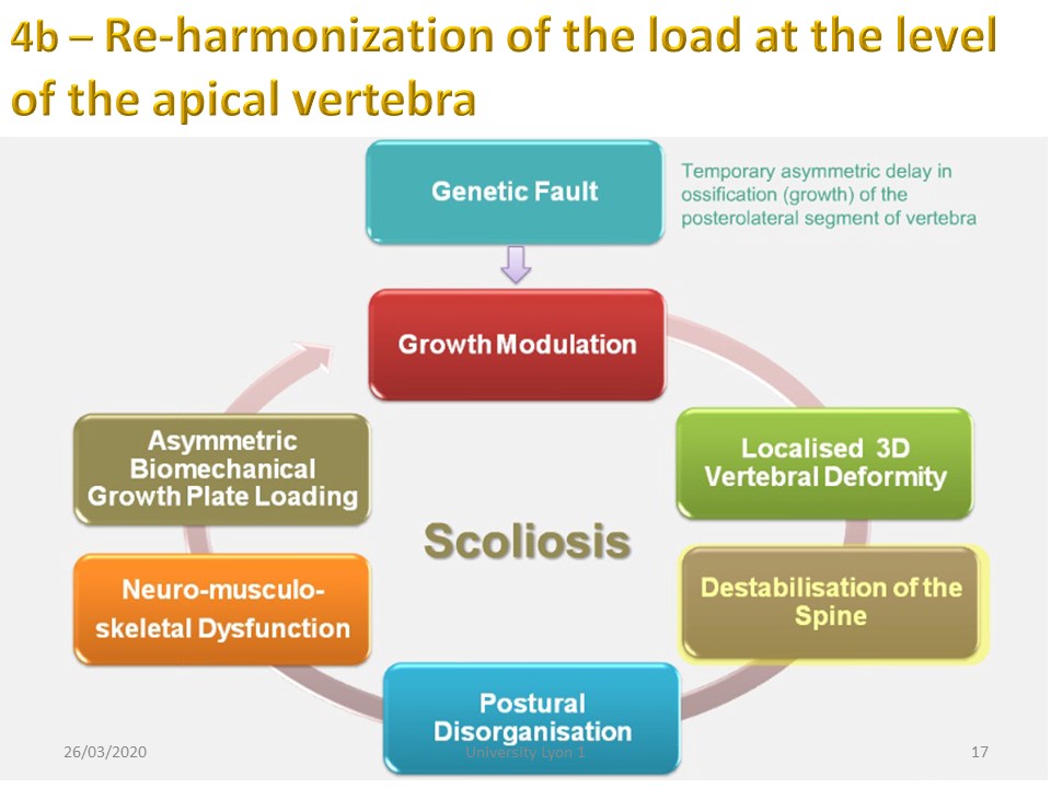 In fact, the more the apical vertebra moves away from the gravity line, the more the deforming load will be high at the concavity level. It is the result of a first-class lever arm.