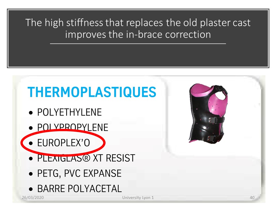 The new Lyon brace derives from previous braces. It combines high stiffness (HR), adjustability and asymmetry like Chêneau brace. |