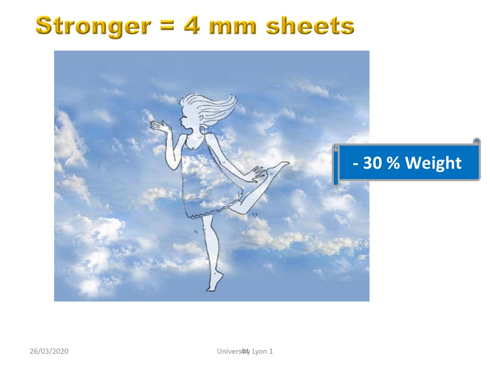 The rigidity of the Europlex is 130 newtons per square millimeter. Whereas for the same thickness of 4 mm polyéthylene, the rigidity is only 30 Newtons per square millimeter. On the other hand, contact with the skin is soft, the polyamide is not hard and, on the contrary, constitutes a shock absorber.