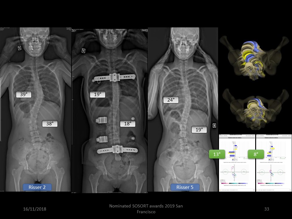 But the most spectacular result is in the sagittal plane with marked improvement in thoraco-lumbar kyphosis. Given the arthrodesis, this improvement is difficult to explain.