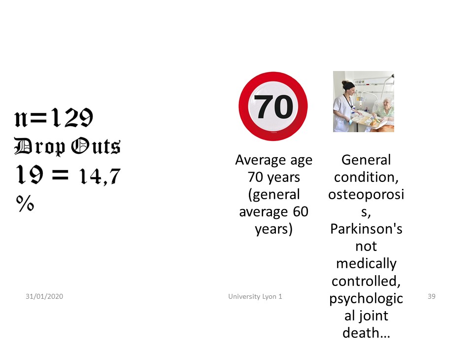 The dropout rate is 14.7%, unchanged since the start of this treatment and very low given the negative image of the brace in adults. Patients who have given up are a little older and weakened by pathologies associated with scoliosis.