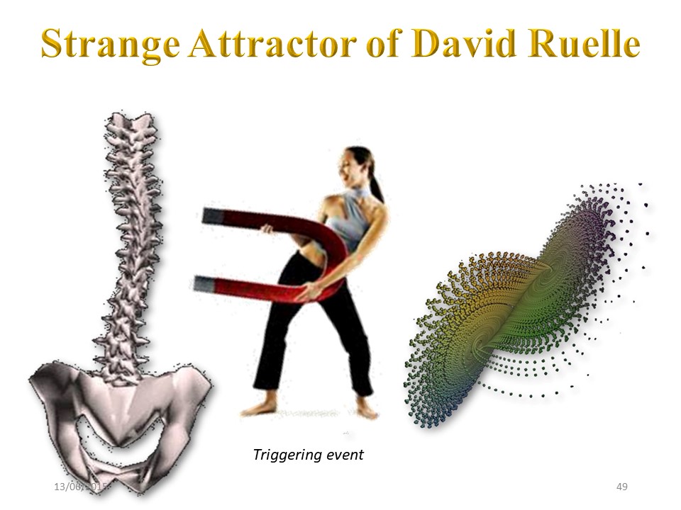 The existence of a strange attractor has been described by a French mathematician. The average of all the movements of the spine during the day, is no longer a straight column, but a curved column. |