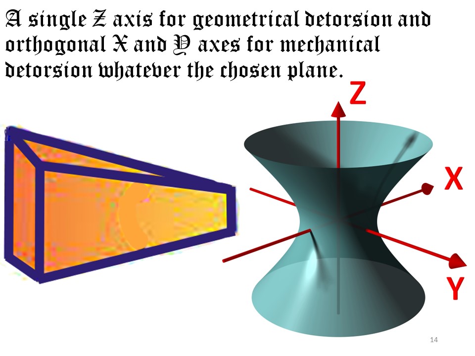 Even with double curvature, the Z axis remains the same for both hyperboloids. The problem is that of the fixed base between the two hyperboloids in the thoraco-lumbar region. |