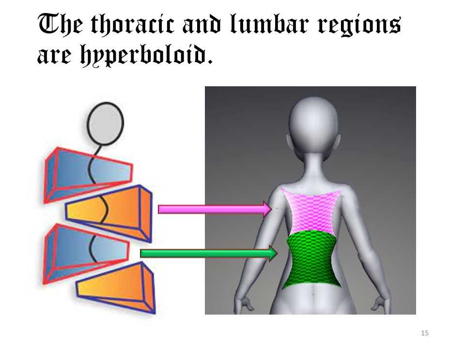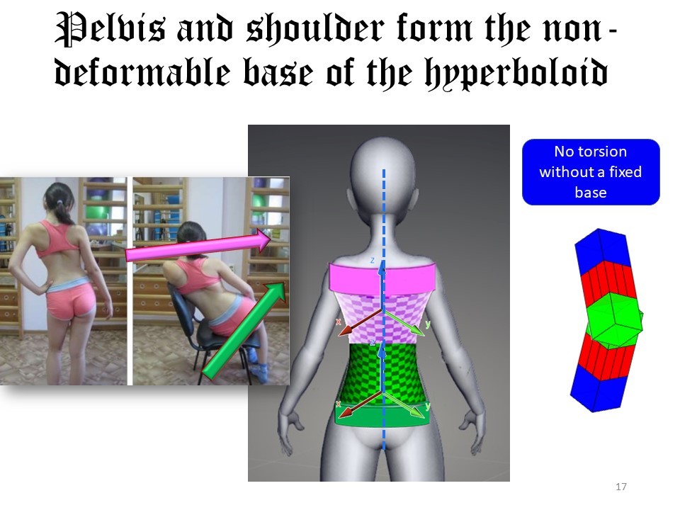 Pelvis and shoulders form the fixed non deformable bases of one or two hyperboloids. |