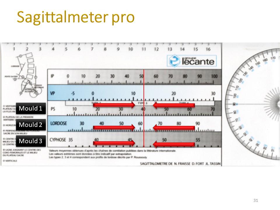 It is almost impossible to correct pelvic version, lumbar lordosis and thoracic kyphosis simultaneously. This is why the digital moulding will be made in an independent corrected position for the thoracic and lumbar regions. Unlike the Chêneau brace, the asymmetry is strictly controlled at the level of the concavities. Moving volumes has no interest in getting lost in concavities.
