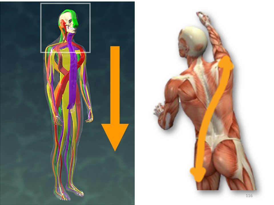 Anterior spiral chain in red. |