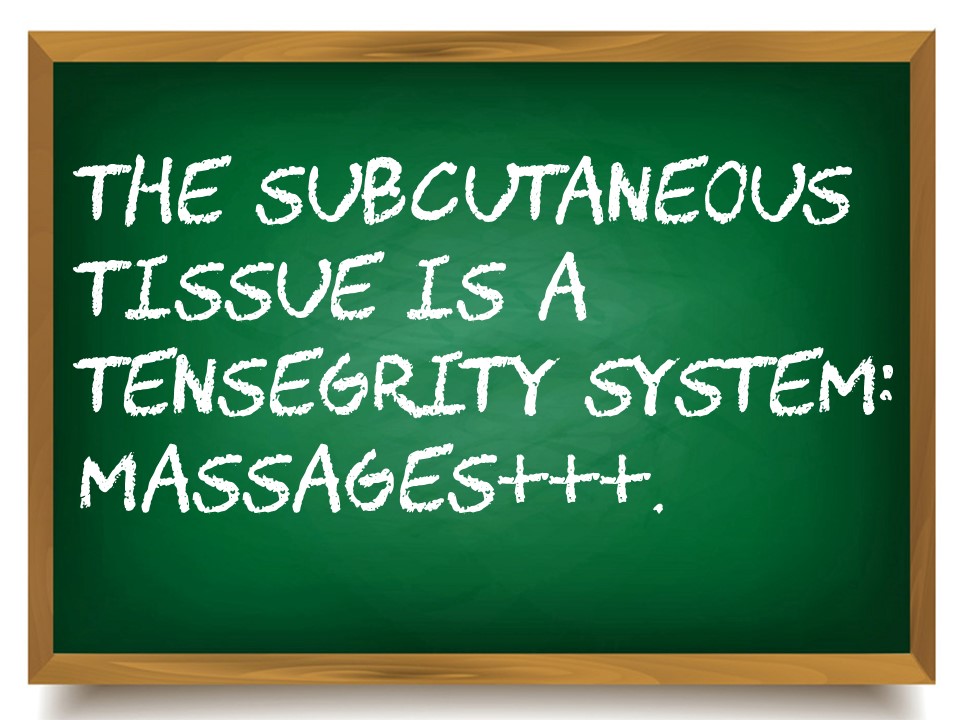 The subcutaneous connective tissue is a system of tensegrity that is clearly visible during a surgical approach with the scalpel. |