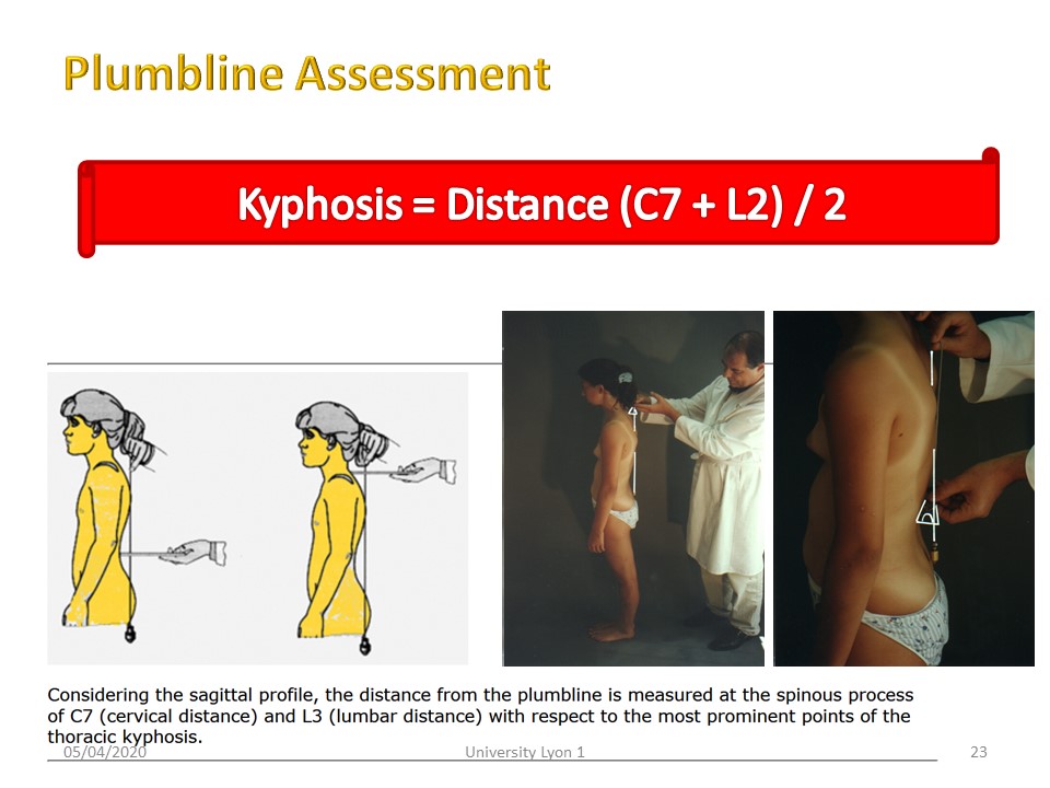 In contrast to scoliosis, there is a good correlation between clinical assessment with plumb line and radiology. |