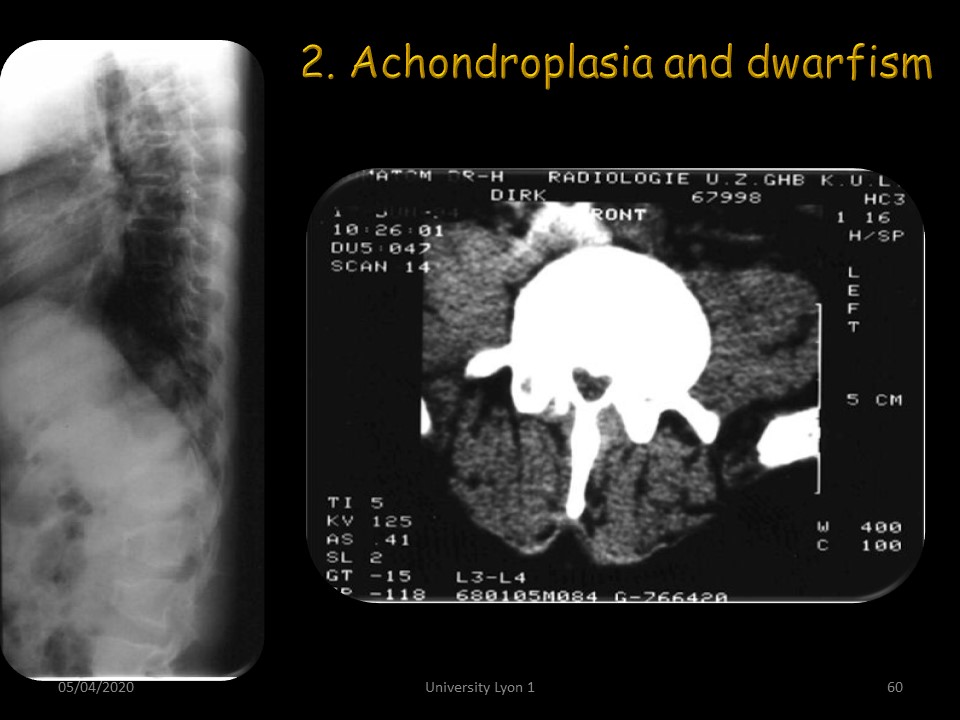 Dwarfism, including achondroplasia, often presents thoraco-lumbar kyphosis with a spinal stenosis. |