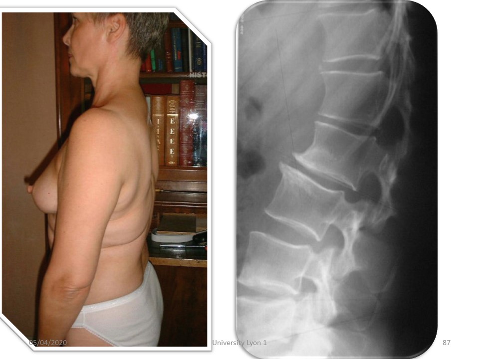 The disease concerns one or more vertebral bodies with mechanical deformity (cuneiformization) of the vertebral bodies. The height of the intervertebral disc is frequently decreased. The notion of repeated micro-traumas is frequently found. |