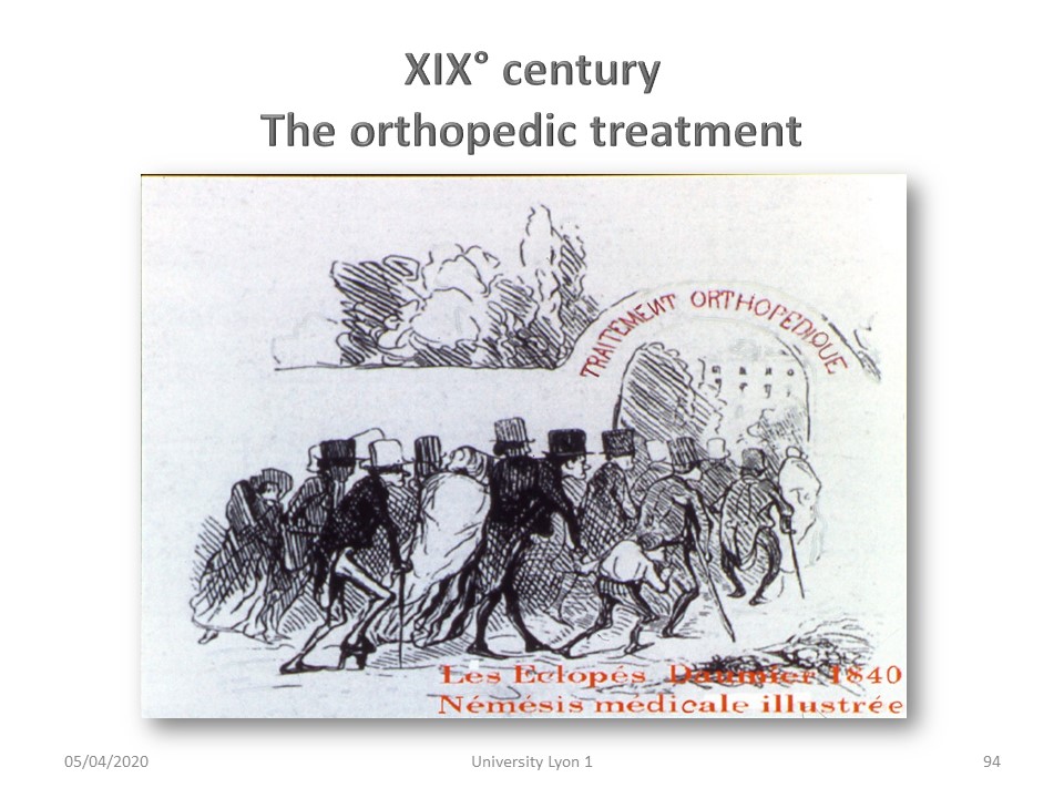 In the 19th century, the first orthopaedic treatment centres appeared where mechanical means were concentrated, such as the Pravaz Institute in Lyon. |