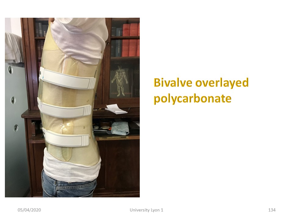 The brace here is made of Europlex'O bivalves nested on the side. The Sforzesco brace without asymmetrical padding or the ARTbrace can also be used. |