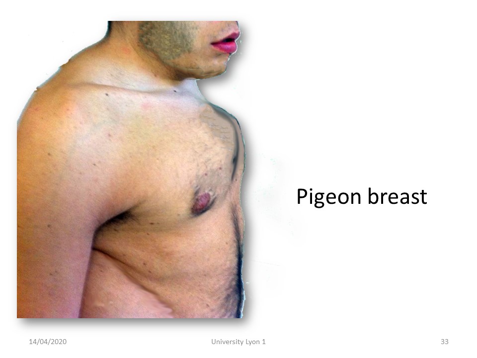 This median sternal depression is often associated with a protrusion of the chondro-costal awnings at a vertical line passing through the nipples. These are the "Sigaud's ailerons", |