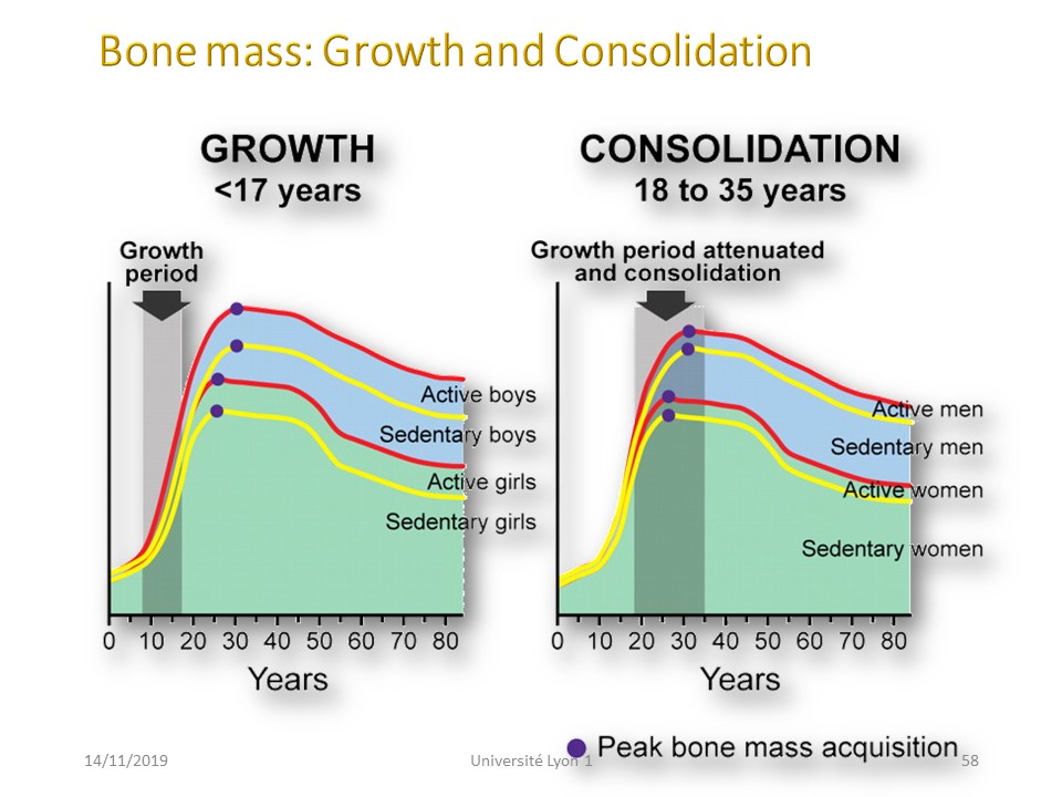 Puberty growth is unique to homo sapiens and theoretically allows it to reproduce in a shorter time. However, it does not accelerate bone mass, which in girls will double between 14 and 21 years of age. It is the mechanical energy directly transmitted by the impact of the foot on the ground that will transform into piezoelectric current at the level of the spine and promote the fixation of calcium on the bone. In case of scoliosis, this "bone fragility" explains the evolution of some scoliosis after Risser 3.