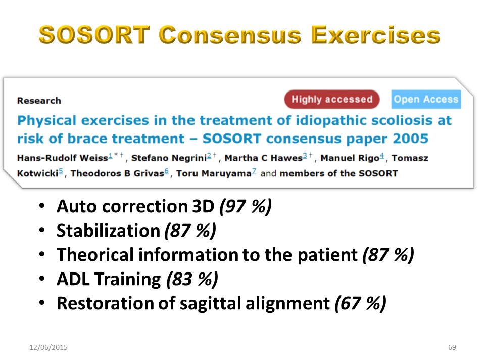 In conclusion, this already old publication highlighted the 3D self-correction exercises without explaining how to obtain it. In the same way the restoration of the sagittal alignment was evoked while all the techniques of the time went in the direction of the accentuation of the flat back. We now have the technological means to achieve these two objectives.