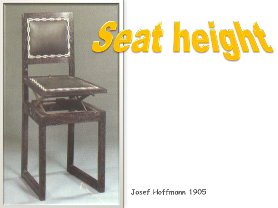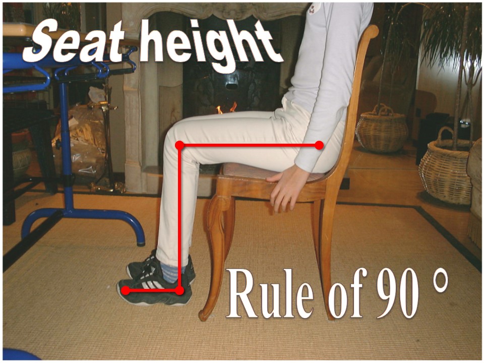 At the same time in Germany, Staffel defined the 90 ° rule. Feet, legs and thighs must form a 90 ° angle. This position defines the height of the seat according to the patient.